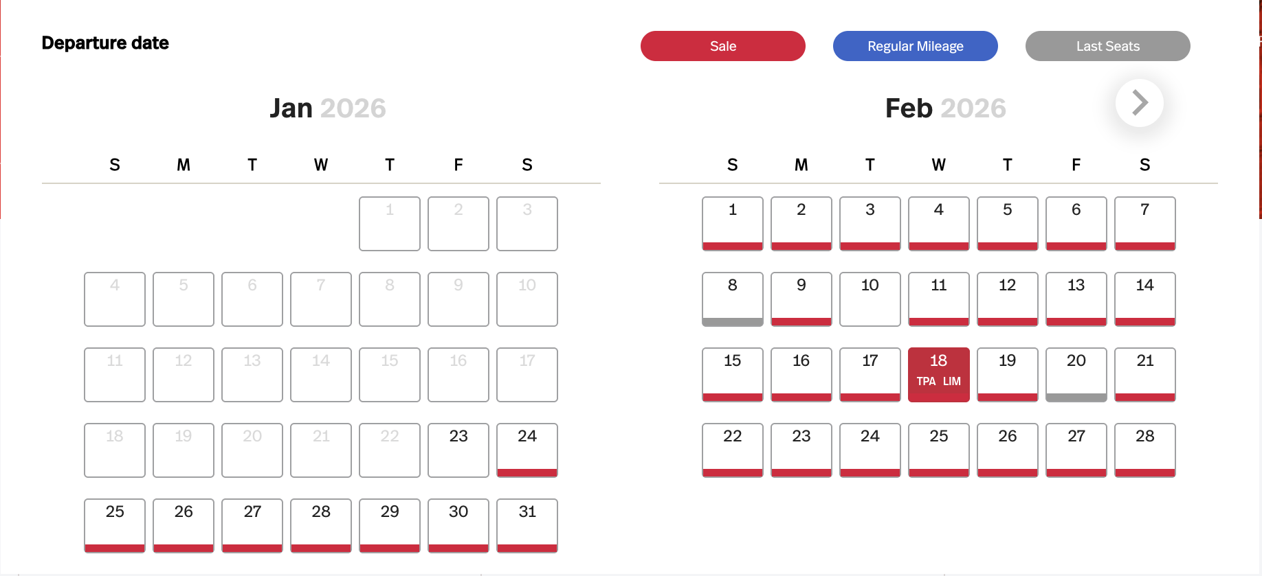 Input your desired cities and click “Dates.” This will populate the LifeMiles calendar. Sale dates are highlighted in red (though availability may still be limited).