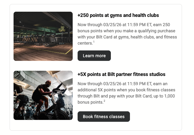 March 19 – March 25, 2026 Gyms, Health Clubs & Fitness Center Purchases, Bilt Partner Fitness Studios (Expired)